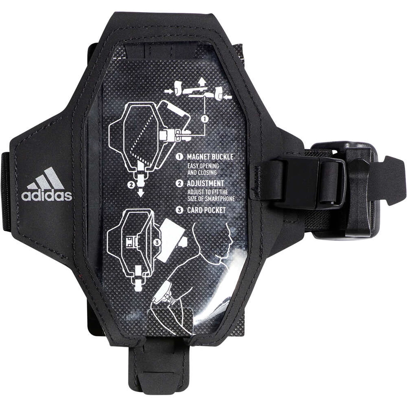 Sangle réglable pour le bras Adidas Run. Panneau transparent pour voir l’écran mobile. Sangles horizontales et verticales pour tenir le téléphone. Détails réfléchissants. Dimensions : 17 x 14,5 cm.