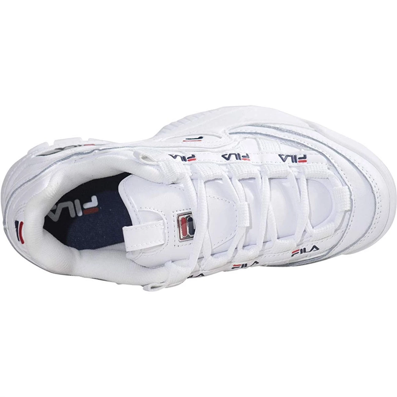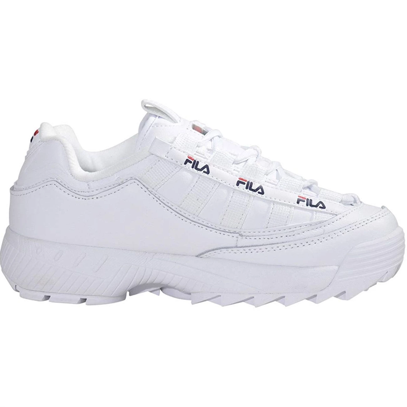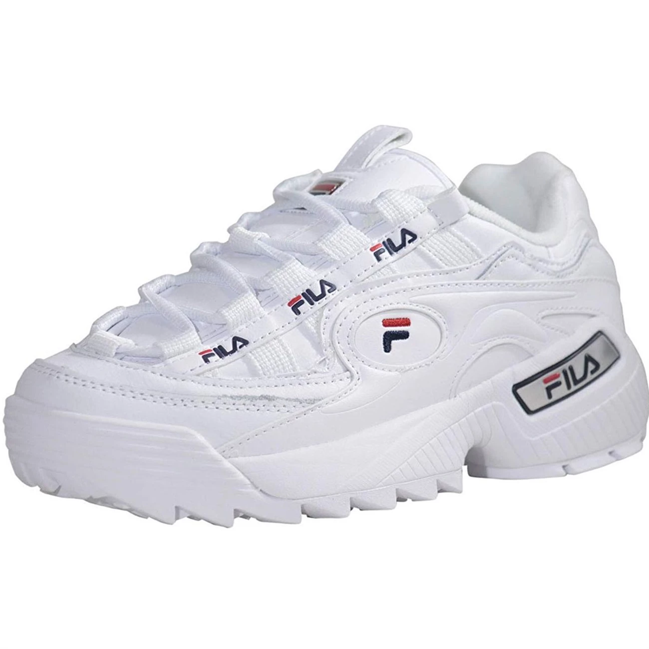 Baskets pour femme de la marque FILA modèle D-Formation. Tige en cuir plaine fleur et textile. Semelle intérieure en textile. Coloris : blanc.