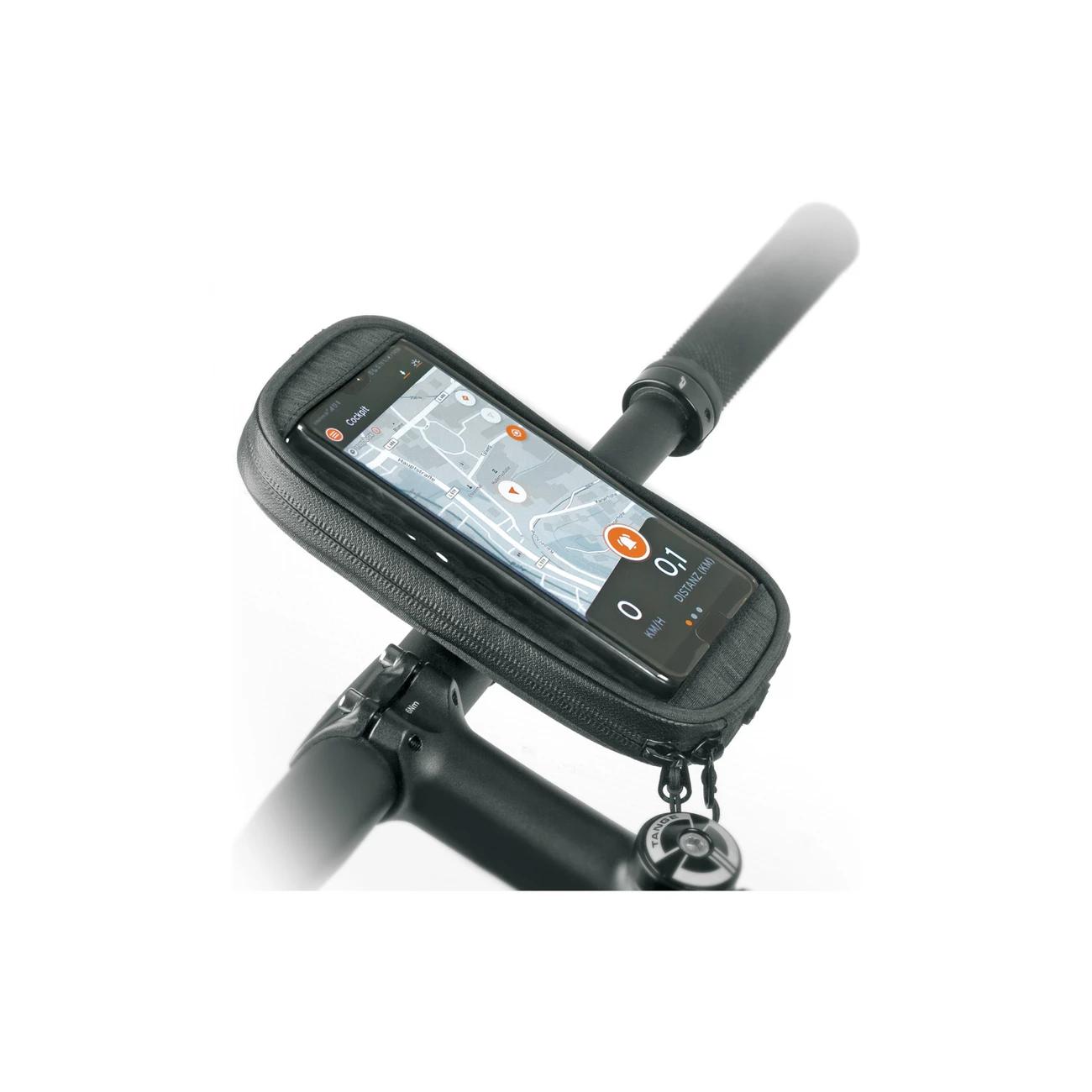 Avec cette housse SKS Smartboy innovante vous pouvez adapter votre smartphone sur le guidon de votre vélo en quelques secondes ou, par exemple, à la barre de poussée de votre poussette. Le boîtier en plastique maintient votre téléphone au sec et à portée de main et dispose également d’une fenêtre tactile transparente pour faire fonctionner votre écran.